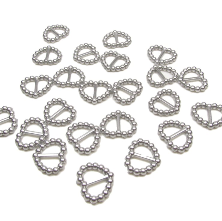 SILVER Acrylic Pearl Buckles Heart Shape Double Sided Ribbon Sliders Table Decorations, Card Making