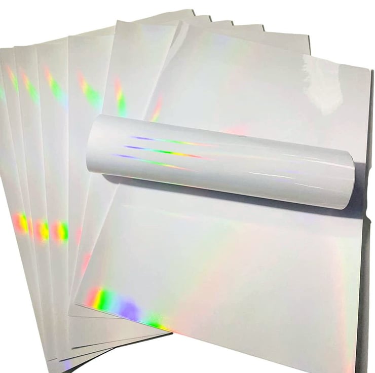 10 Sheets Printable Self Adhesive Holographic Clear Vinyl Overlay Sheets Stickers for Laser and Ink Jet Printers