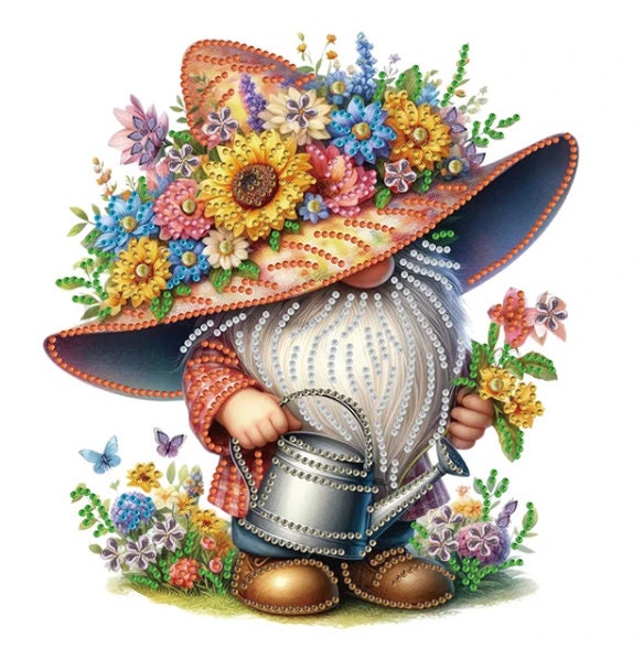 5D DIY Watering Can Floral Gardening Gnome Diamond Art Kit Crystal Embroidery Rhinestone Canvas 30cm x 30cm