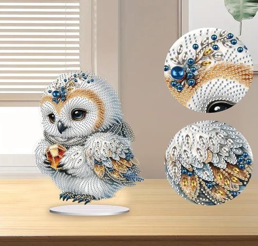 The Diamond Art White Owl Tabletop is a captivating rhinestone art DIY kit that lets you create a stunning white owl design using the 5D diamond embroidery technique. This kit features a majestic owl with intricate details, brought to life with shimmering rhinestones that add depth and texture to the artwork.