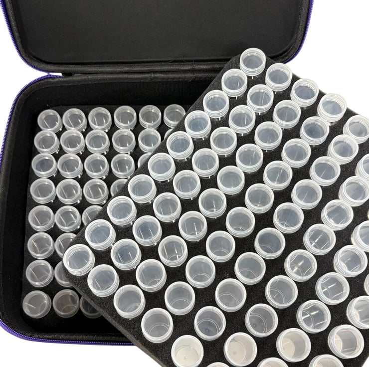 Large Capacity: 240 individual slots provide ample storage space for your 5D diamond painting drills, keeping them organized and easily accessible. There are 3 levels of foam bases each containing 80 pots. Each pot holds roughly 2000 diamond pieces.