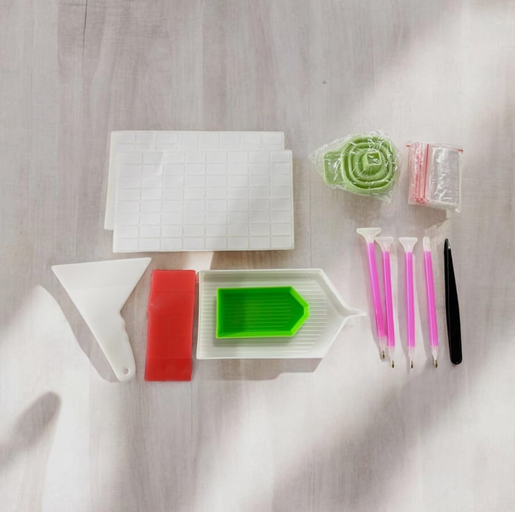 Convenient Accessories: Comes with essential accessories, including 4 diamond painting pens, multiple glue wax pads, tweezers, a funnel to easily transfer your diamonds, 1 small and 1 large diamond trays, sticker labels, extra baggies and a scraper to easily remove diamonds if a mistake is made. This makes it a comprehensive kit for both beginners and experienced diamond painters.