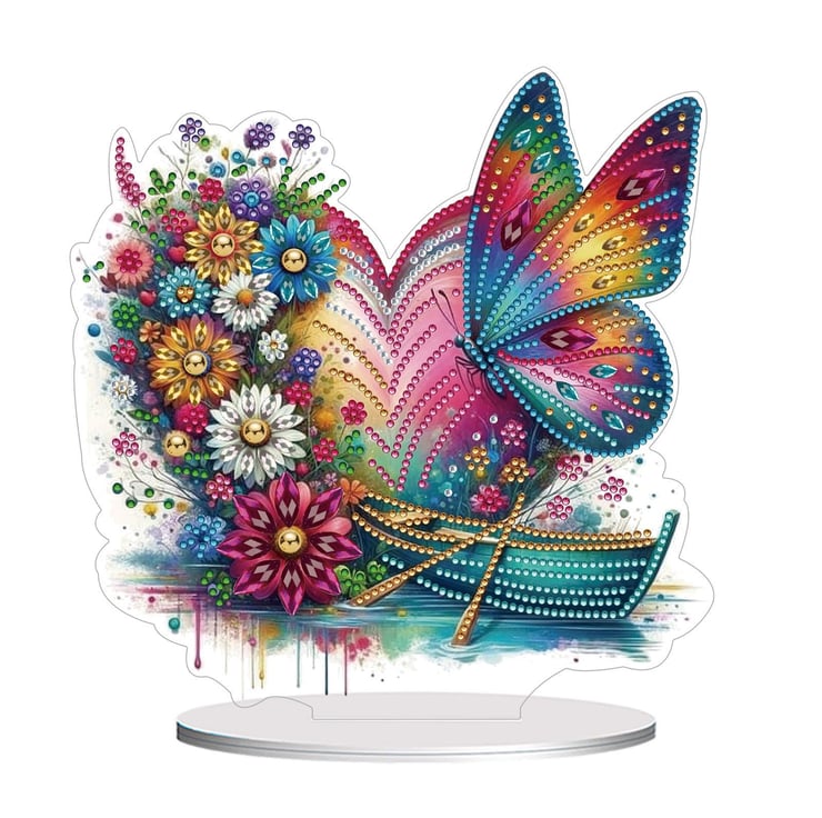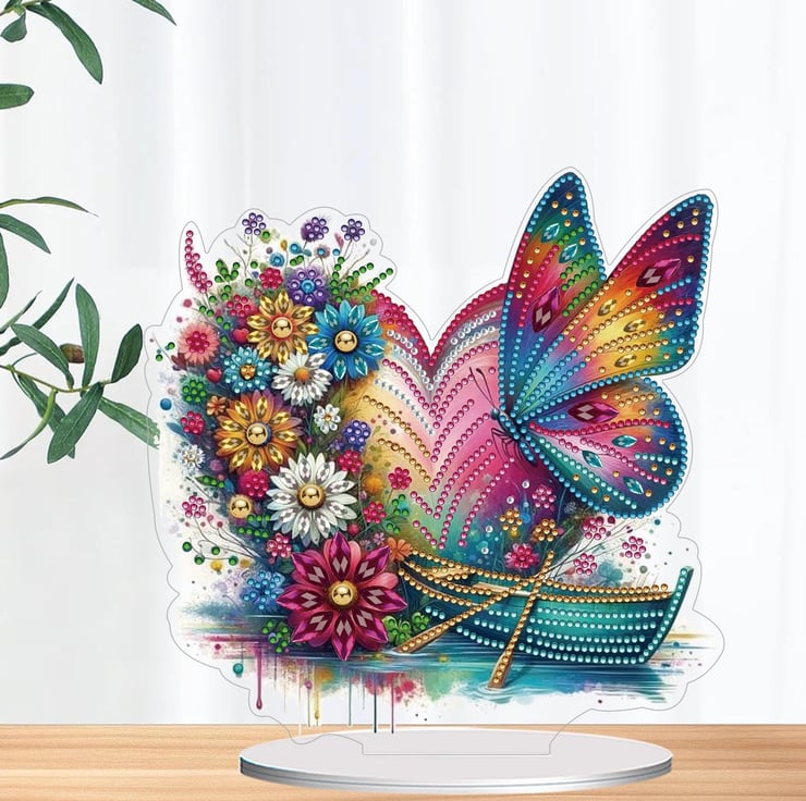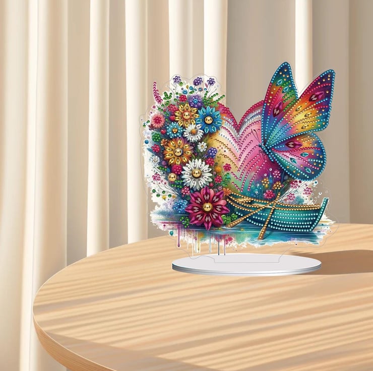 5D DIY Rainbow Floral Butterfly Heart Diamond Painting Kit Crystal Embroidery Rhinestone Acrylic Table Top Decoration