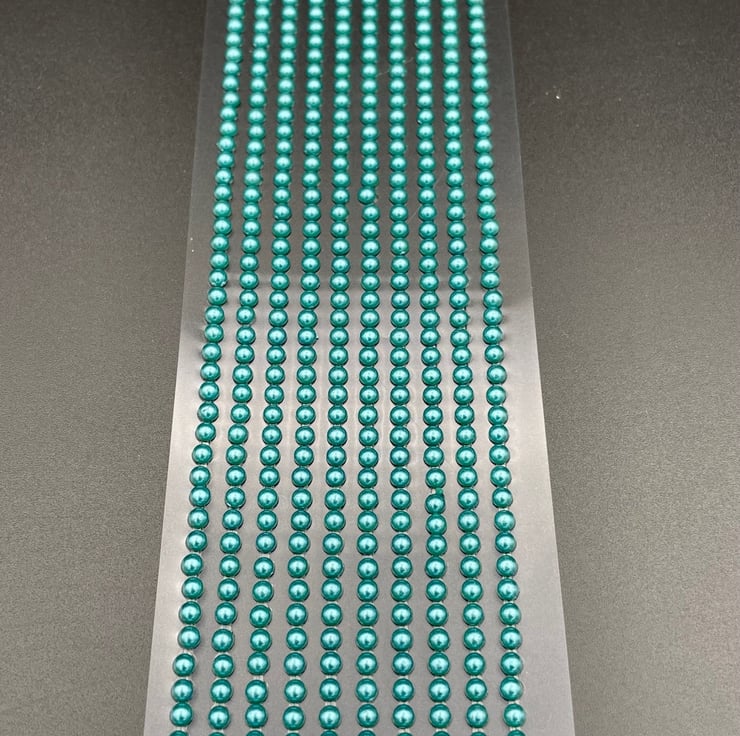 Beautiful Small Round Pearlised Self Adhesive Teal Green Beads