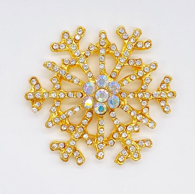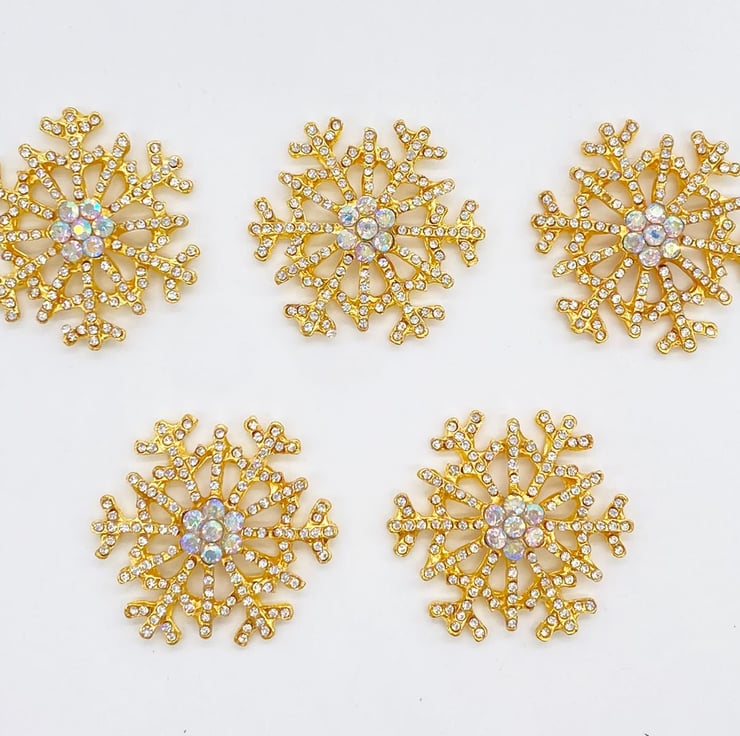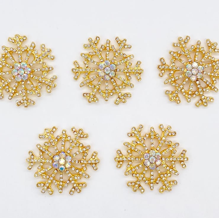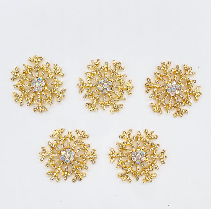 5pc Gold Diamante Snowflake Embellishments with AB Rhinestone Centre for Christmas and Scrapbooking