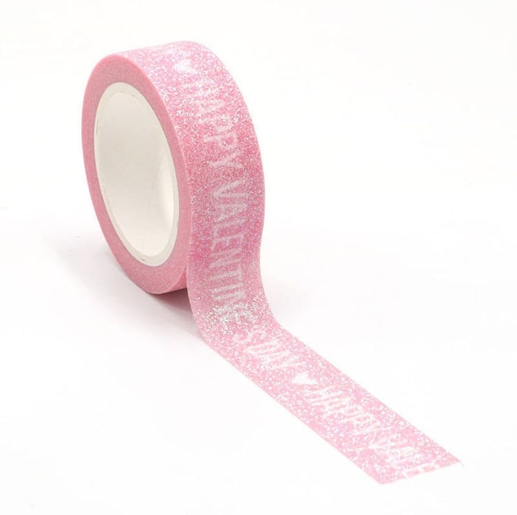 Happy Valentines Day Glitter Sparkle Pink Washi Tape 15mm x 3m