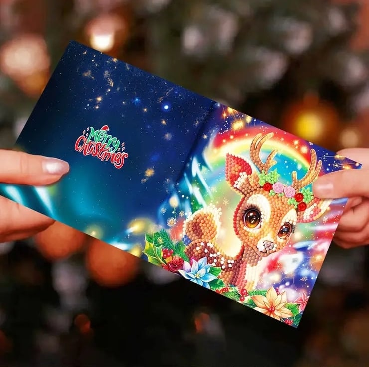 Comes with everything to make these Cute Christmas Cards including cards, diamonds, tray for diamonds, diamond art pen, wax square and envelopes.