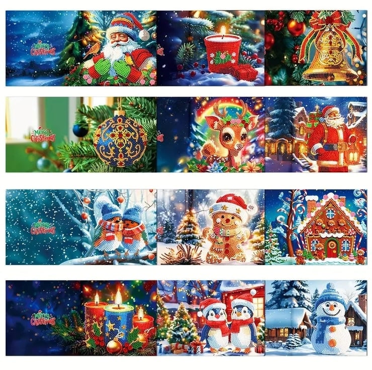12pcs 5D DIY Diamond Art Christmas Card Kits For Adults - Diamond Painting Christmas Greetings Card Kit Decoration