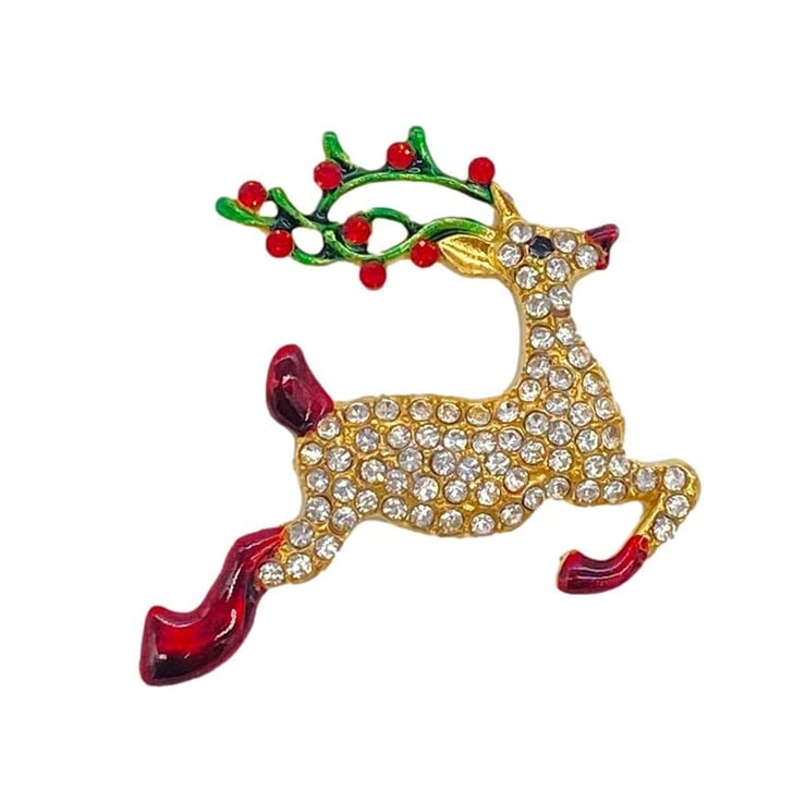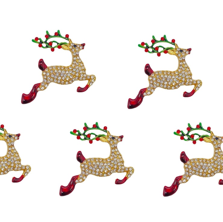 5pcs Rhinestone Reindeer Embellishments with Holly Antlers for Christmas and Scrapbooking