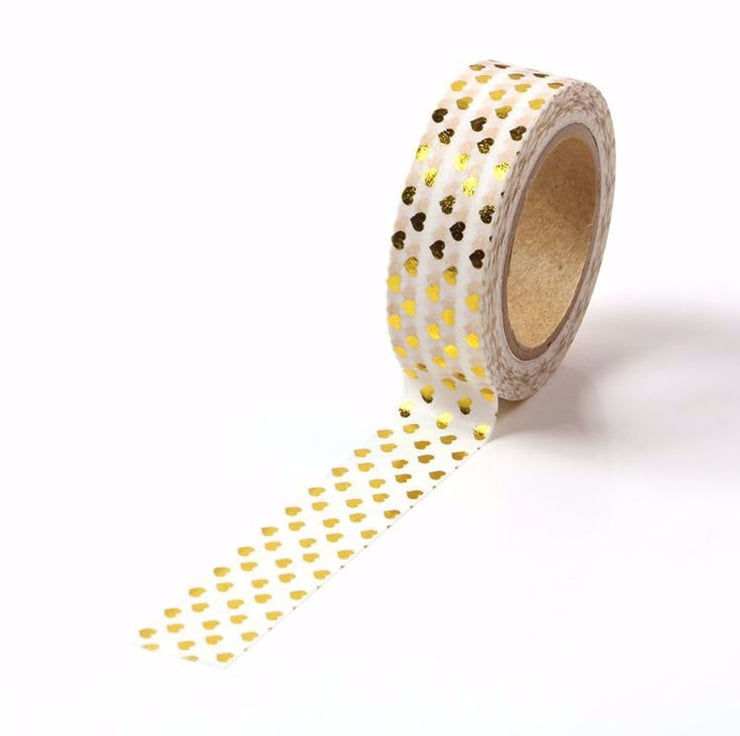 Quality foil washi tape. This is a simple but elegant washi tape with a white base colour and gold foil hearts