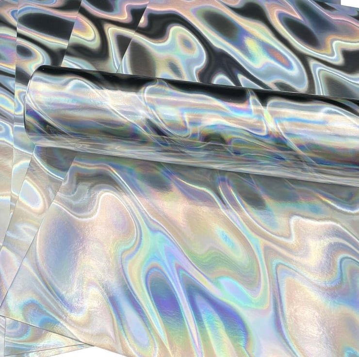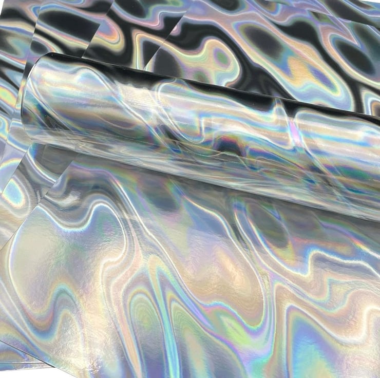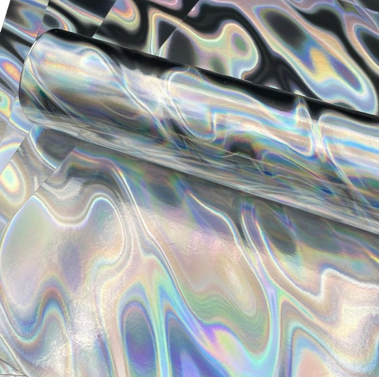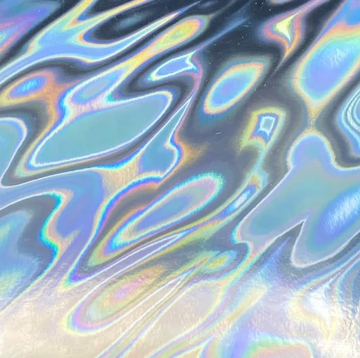 Mirri Holographic Lava is flowing with colour in a random wave-like pattern similar to that of lava.