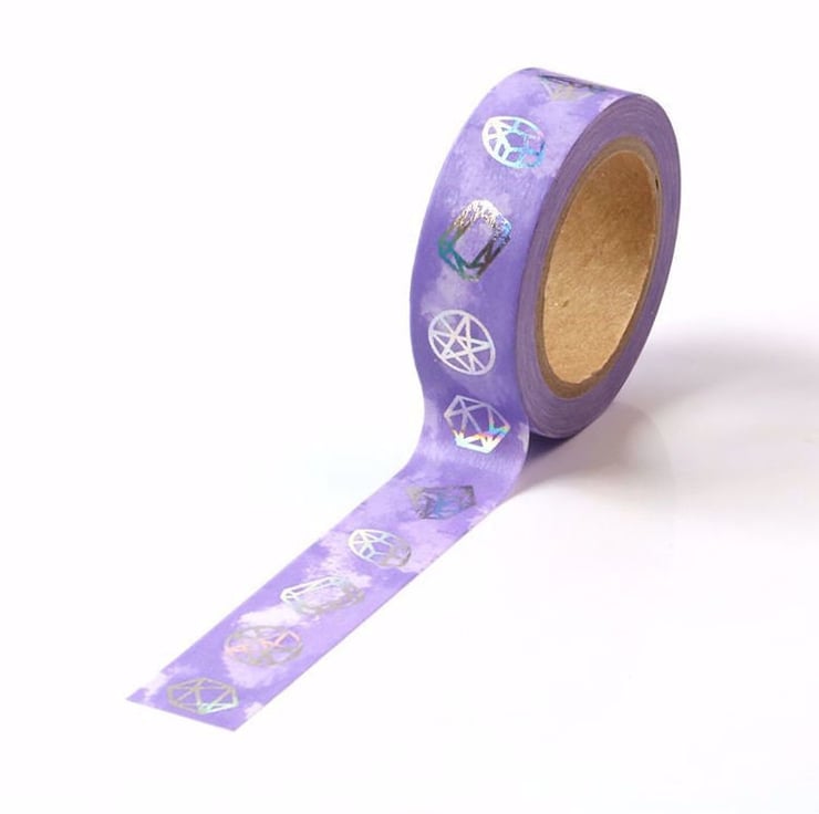 Purple Diamond Washi Tape Holographic Colour Changing Silver Foil Diamonds Decorative Masking Tape UK 15mm x 10 Meters