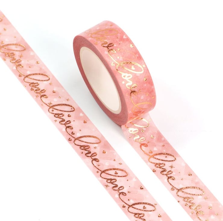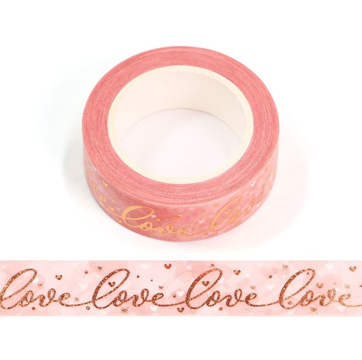 Pink and Rose Gold Love and Hearts Washi Tape 15mm x 10m
