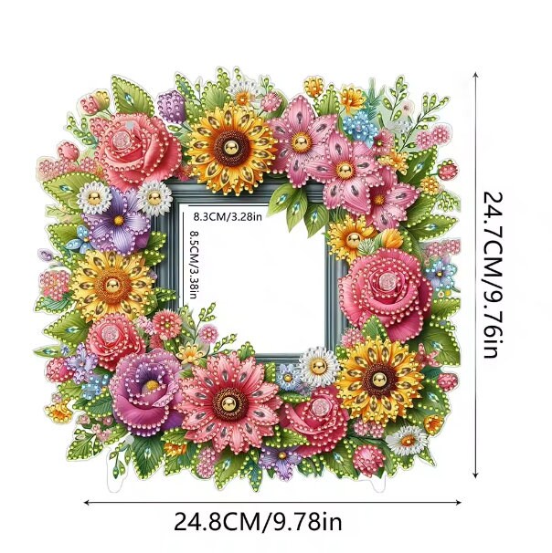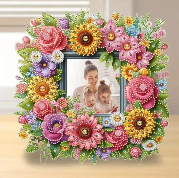 5D DIY Floral Photo Frame Diamond Art Kit Crystal Embroidery Rhinestone Acrylic Table Top Frame Decoration Approx 25cm x 25cm