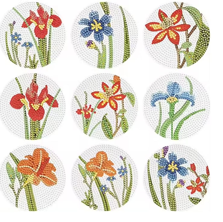 9pcs 5D Diamond Art Coasters Flower Coasters DIY Floral Diamond Coasters Kit With Holder