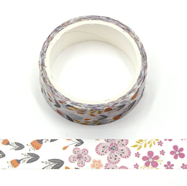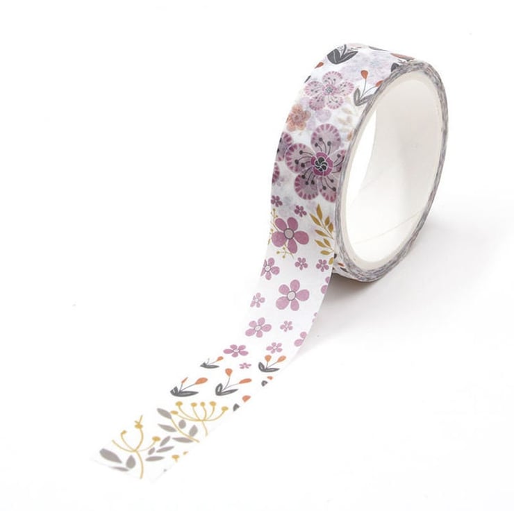 Purple Flowers Decorative Floral Washi Tape 15mm x 5m