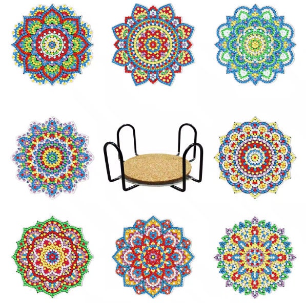 8pcs 5D Diamond Art Coasters Medallion Mandala Coasters DIY Shaped Diamond Coasters Kit With Holder