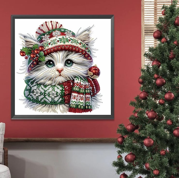 5D DIY Christmas Kitten Diamond Art Painting for Adults 30cm x 30cm, Crystal Embroidery Rhinestone Canvas by Numbers for Arts and Crafts & Wall Decor