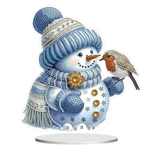5D DIY Blue Snowman With Robin Christmas Diamond Art Kit Crystal Embroidery Rhinestone Approx 23cm x 19cm Acrylic Table Top Decoration