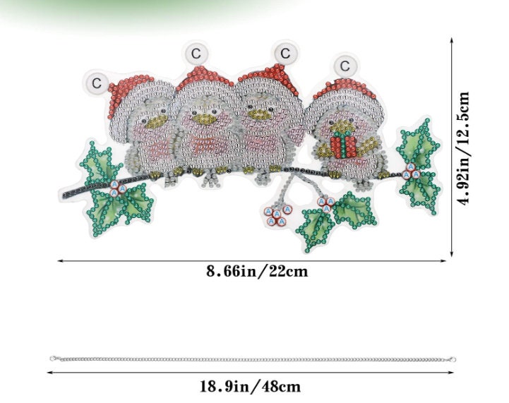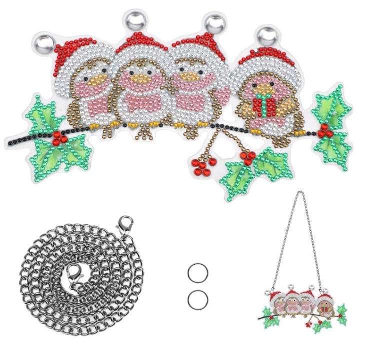 5D DIY Christmas Robins on Branch Diamond Painting Art Kit Embroidery Rhinestone Acrylic Hanging Ornament Decoration Approx 22cm x 12.5cm