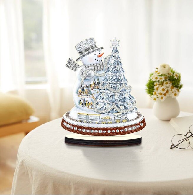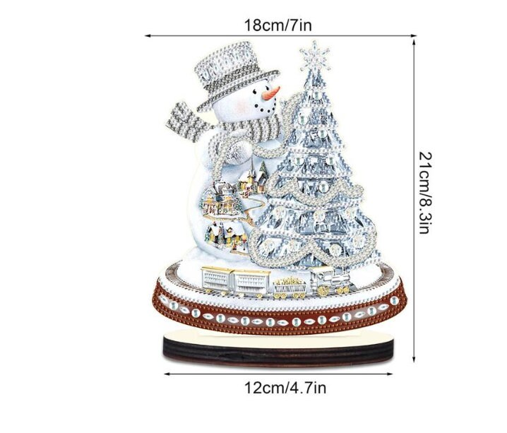5D DIY Silver Christmas Snowman with Tree Diamond Art Kit Crystal Embroidery Rhinestone Approx 21cm x 18cm Table top Decoration