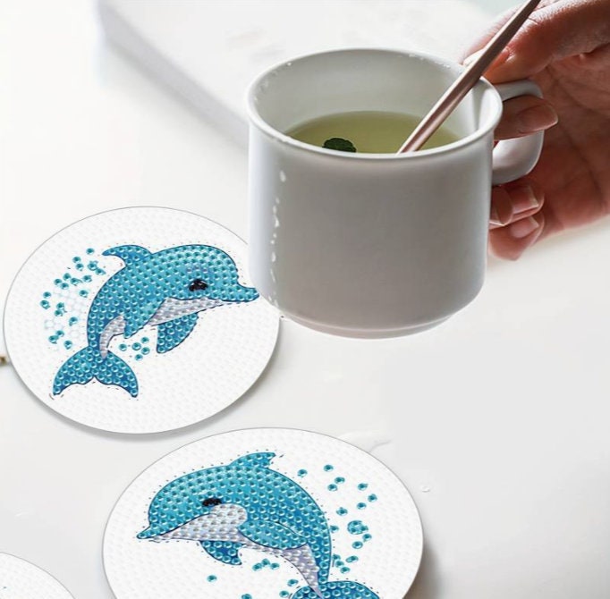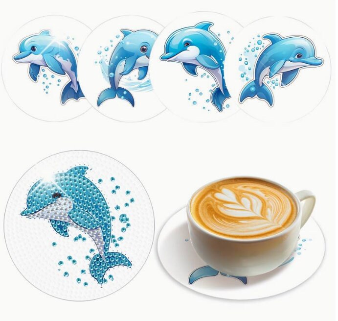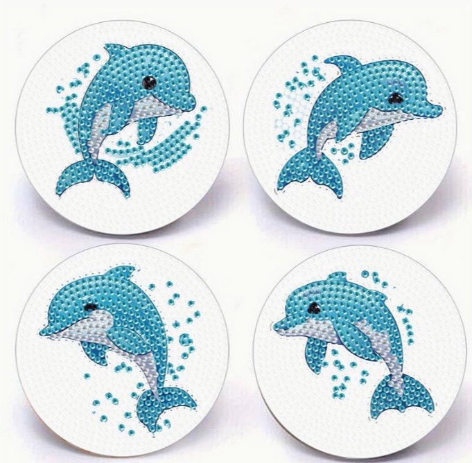 4pcs 5D Diamond Art Coasters Dolphin Coasters DIY Blue Diamond Coasters Kit for Beginners Arts and Crafts