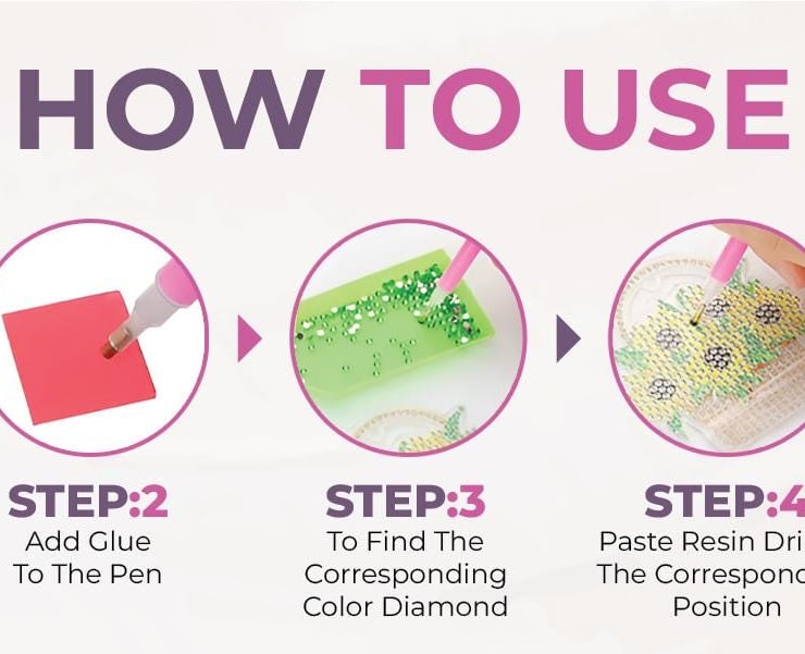 Easy to use: Simply press the pen into the glue square and one by one start sticking your diamonds and watch it come to life!