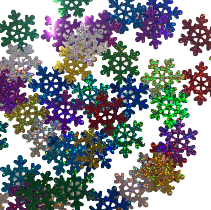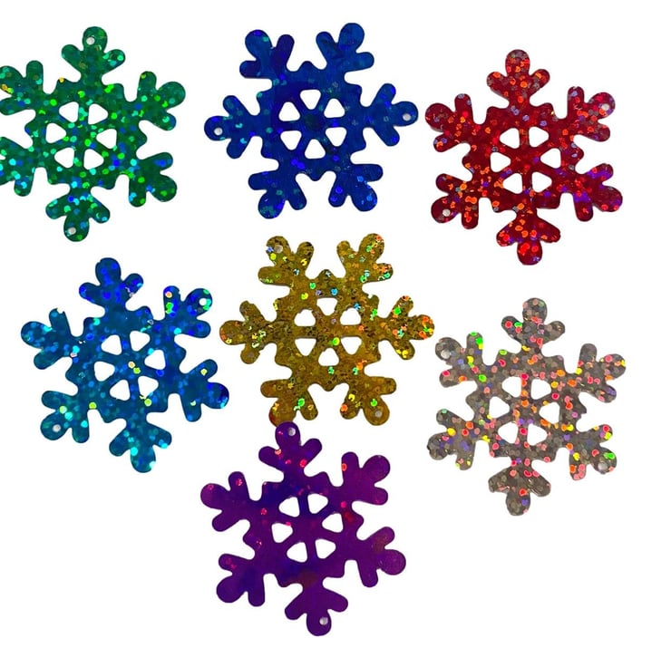 50pcs Assorted Holographic Coloured Foil Snowflake Embellishments for Crafting