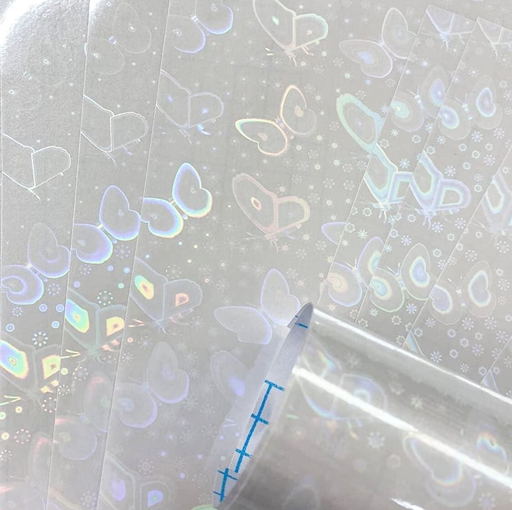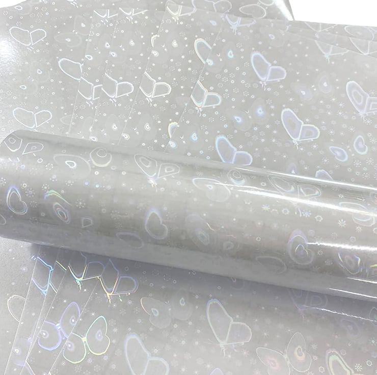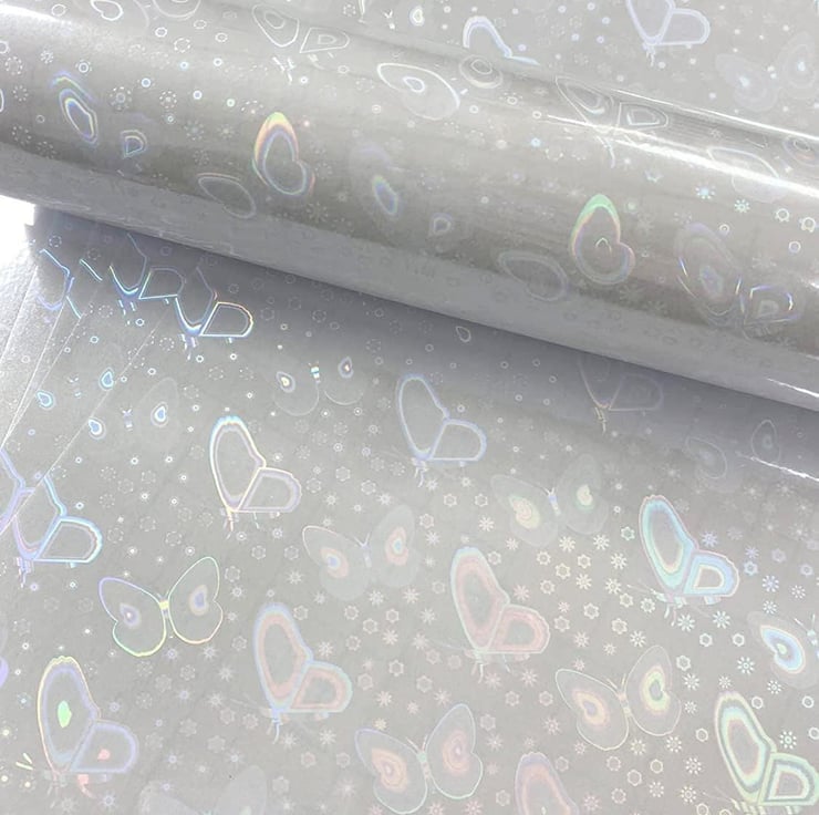 Beautiful Transparent Holographic Self-Adhesive Vinyl Overlay In Holographic Butterfly Patterns