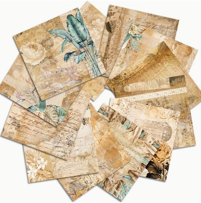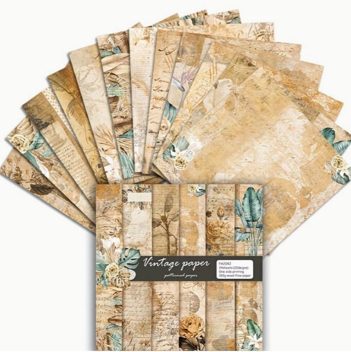 Syntego 24 Sheets, 12 Designs Vintage Paper Design Decorative Acid Free Scrapbook Paper Set 160gsm,Single Sided 15.2cm x 15.2cm (6in x 6in)