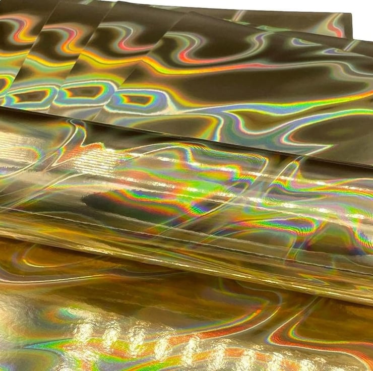 Mirri Holographic Lava is flowing with colour in a random wave-like pattern similar to that of lava.
