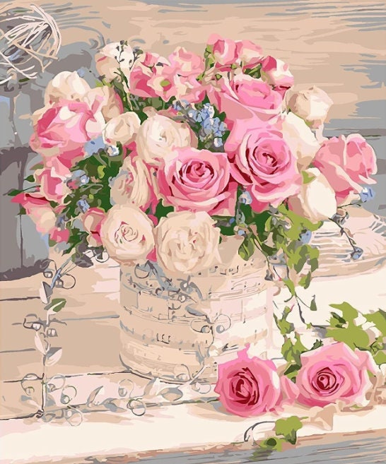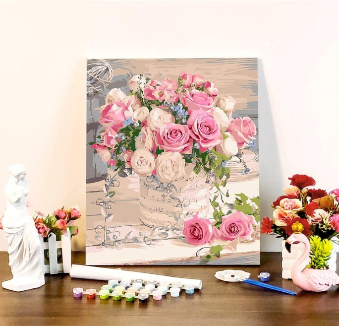 Enjoy this Pink Rose exquisite 50x40cm painting by numbers kit. Capturing the beauty of roses, this set invites you to create your own masterpiece.