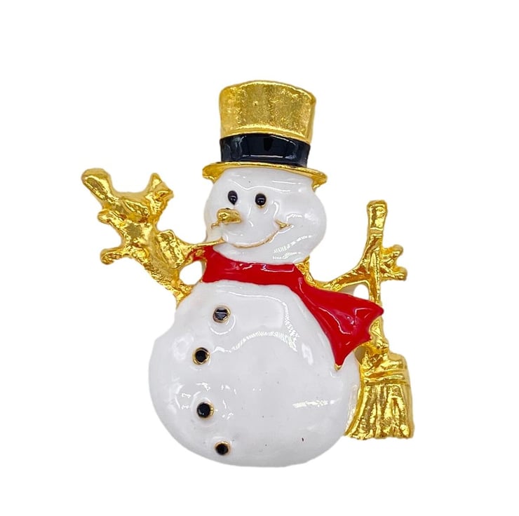 Cute white snowman with gold arms and hat, with red scarf