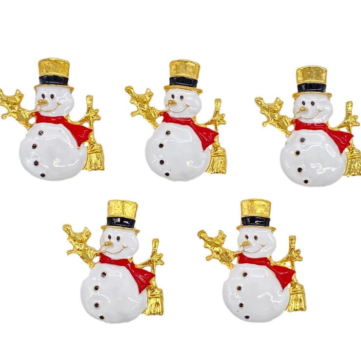5pcs White Snowman Embellishments with Gold Embossed Details For Christmas Scrapbooking
