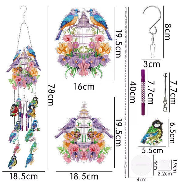 5D DIY Assorted Bird Hanging Windchime Diamond Art Kit Crystal Embroidery Rhinestone Acrylic Decoration Approx 78cm x 19cm