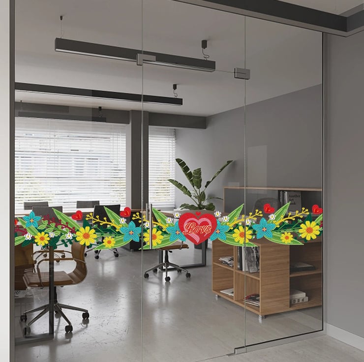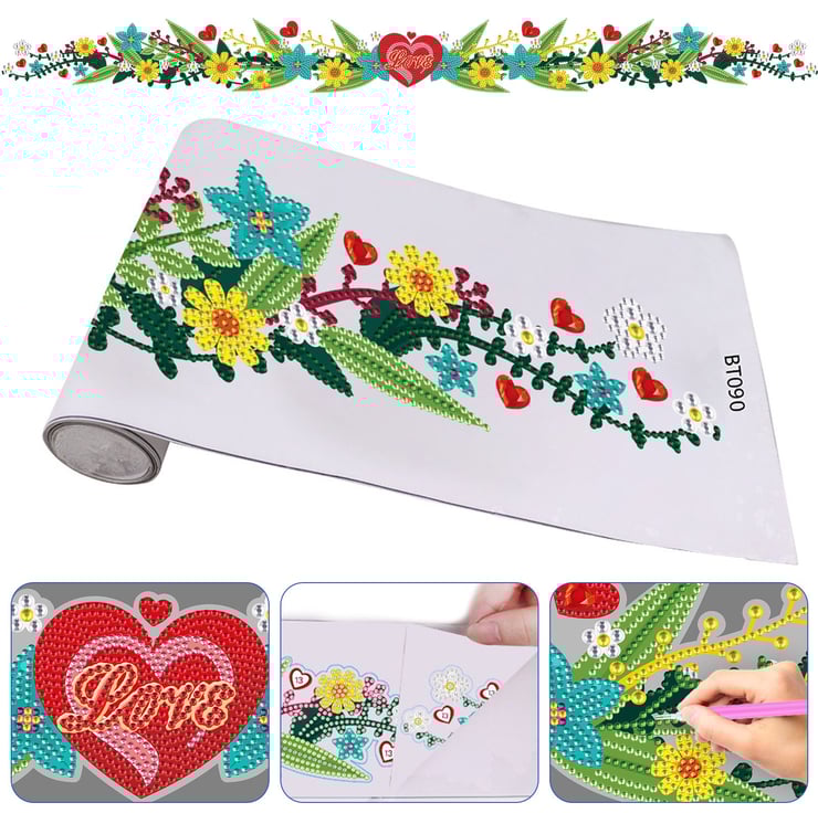 DIY Love Heart Floral Window Sticker Diamond Art Kit Embroidery Rhinestone Ornament Decoration Approx 1 Metre Long