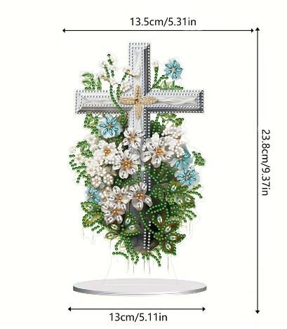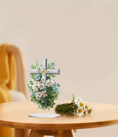 5D DIY Floral Cross Diamond Painting Art Kit Embroidery Rhinestone Acrylic Table top Ornament Decoration