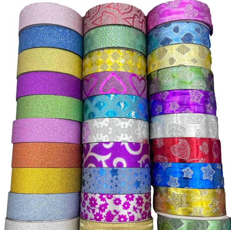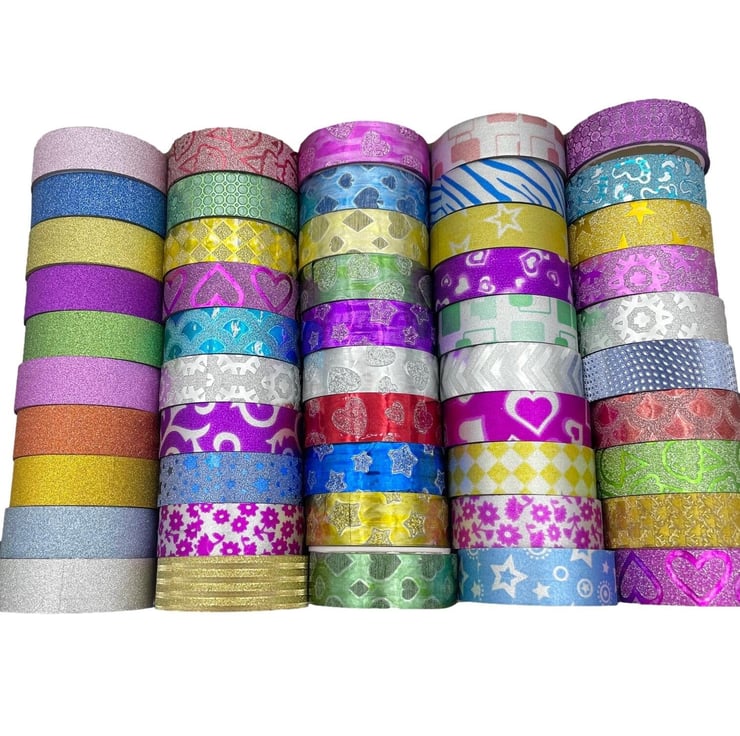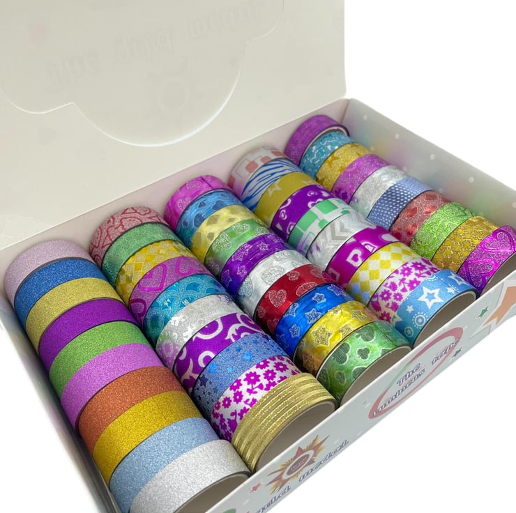 The set includes 50 uniquely designed washi tapes in glitter and foil, offering a lots of choices to decorate any crafting project