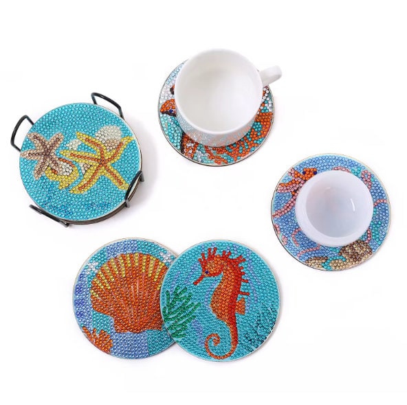 This DIY kit includes everything you need to create your custom coasters: pre-printed designs, rhinestones, tools, and a coaster holder for convenient storage or display. The coasters are not only functional but also serve as charming decorative pieces, making them perfect for beach lovers, marine enthusiasts, or anyone who enjoys creating handmade art.
