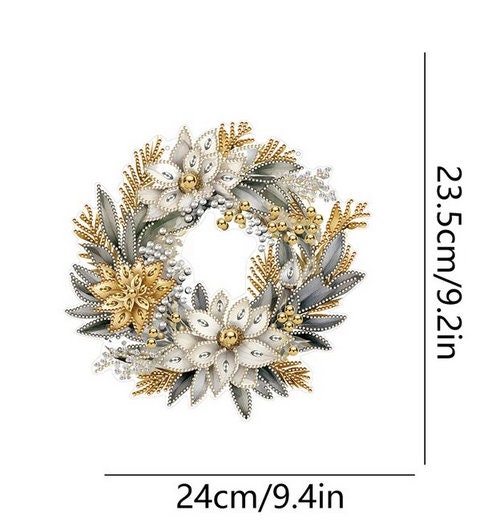 5D DIY White Christmas Wreath Hanging Diamond Art Kit Crystal Embroidery Rhinestone Approx Size 24cm x 23.5cm Acrylic Decoration