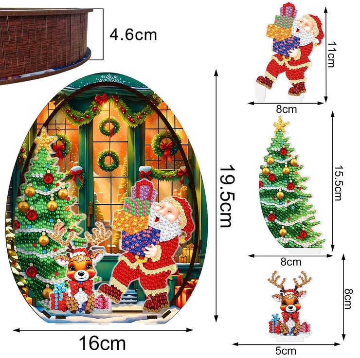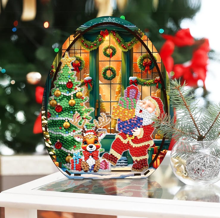 This kit includes all the materials needed to complete the project: a wooden tabletop base, colorful rhinestones, and tools for easy application. Once finished, the handmade wooden tabletop ornament becomes a stunning piece of holiday d cor, perfect for display during the Christmas season.