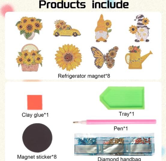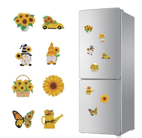 8pcs 5D Diamond Art Assorted Sunflower Gnome Magnets DIY Diamond Magnet Kit for Beginners Arts and Crafts