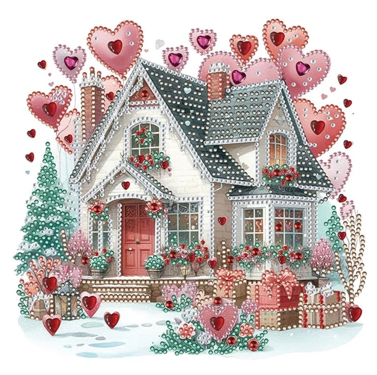 5D DIY Magical Love Hearts House Partial Special Shaped Drill Diamond Art Painting for Adults 30cm x 30cm Canvas by Numbers