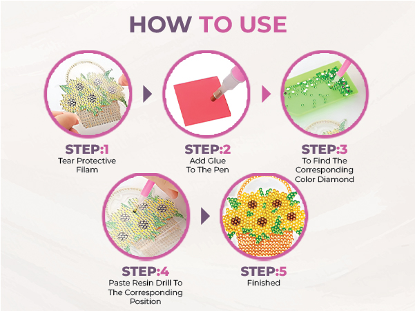 Peel off the plastic layer to get a very sticky surface which ensures the diamonds wont fall off and will securely stay on