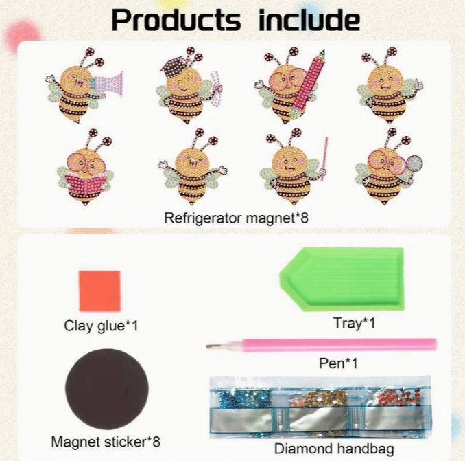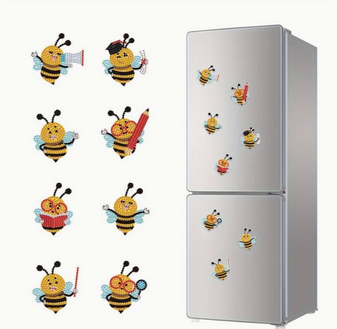 8pcs 5D Diamond Art Assorted Learning Bee Magnets DIY Diamond Magnet Kit for Beginners Arts and Crafts