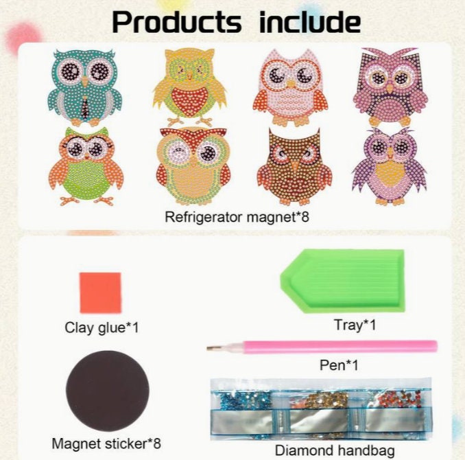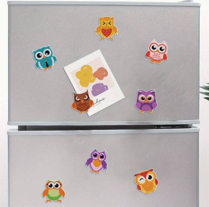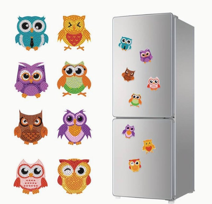 8pcs 5D Diamond Art Assorted Colourful Owl Magnets DIY Diamond Magnet Kit for Beginners Arts and Crafts