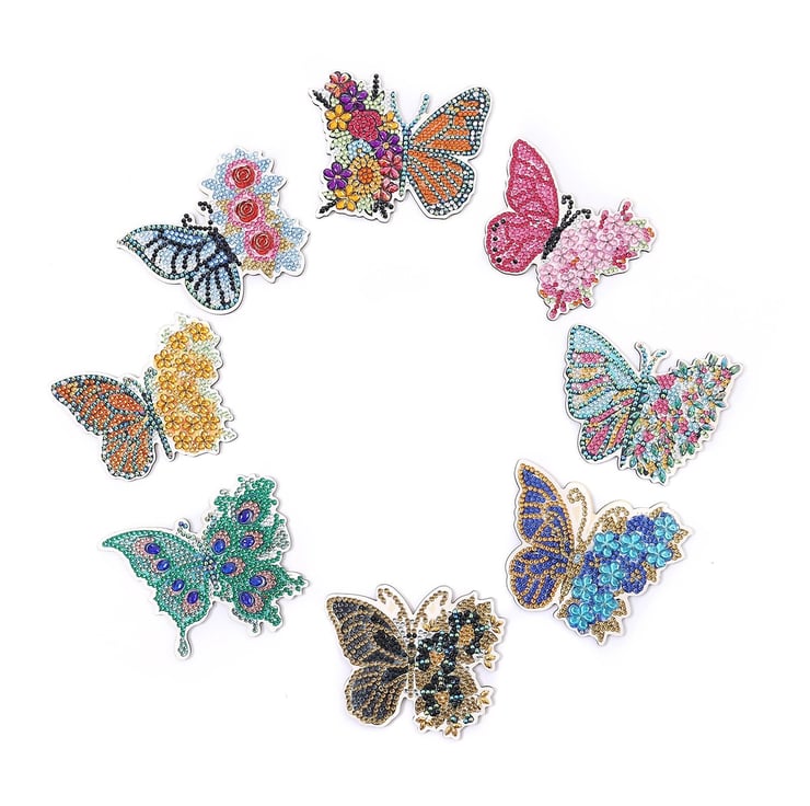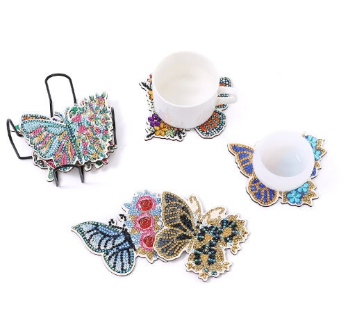 8pcs 5D Diamond Art Coasters Assorted Colourful Floral Butterfly Coasters DIY Butterfly Diamond Coasters Kit With Holder