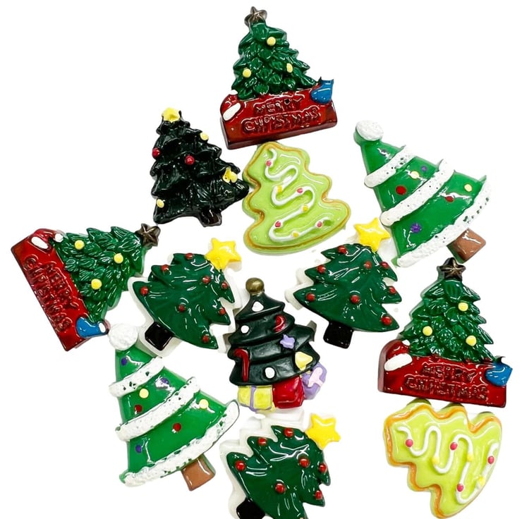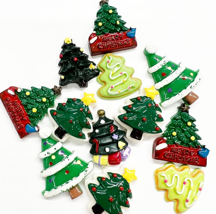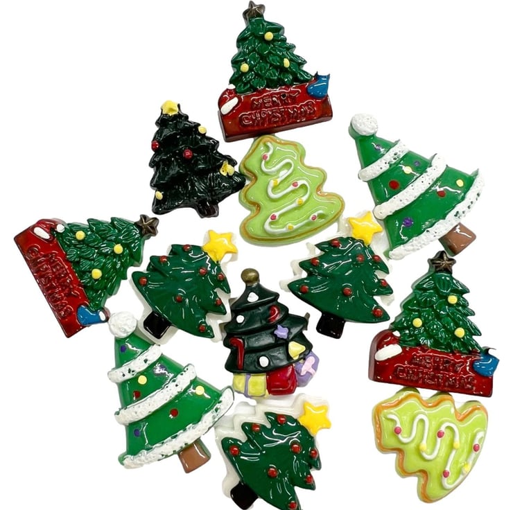 12pcs Kawaii Assorted Christmas Trees Flatback Resin Embellishments Cabochons for Crafting