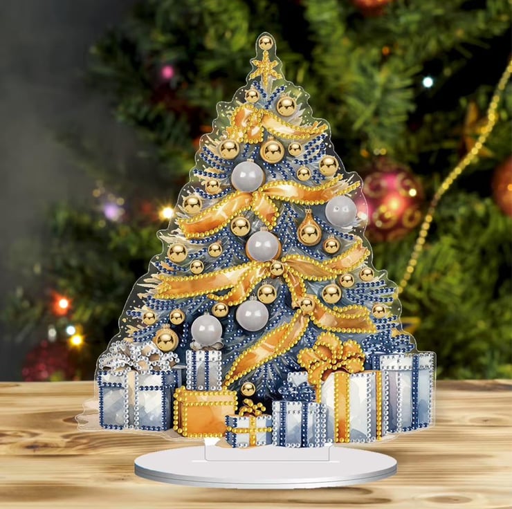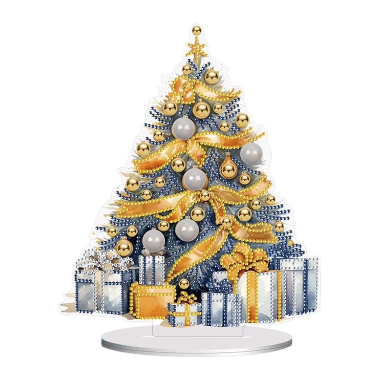5D DIY Christmas Tree with Yellow Ribbon Diamond Art Kit Crystal Embroidery Rhinestone Approx 25cm x 20cm Acrylic Table Top Decoration