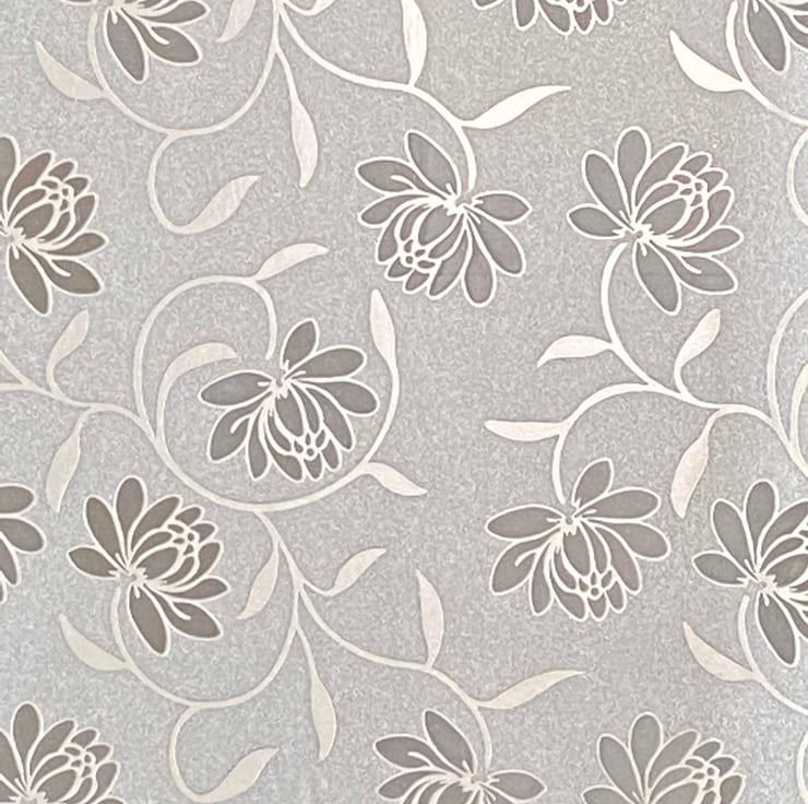 A decorative Silver glitter paper base with silver foil flowers and leaves
